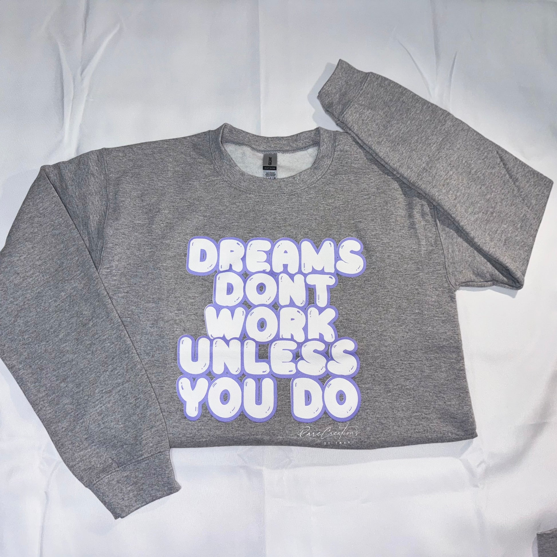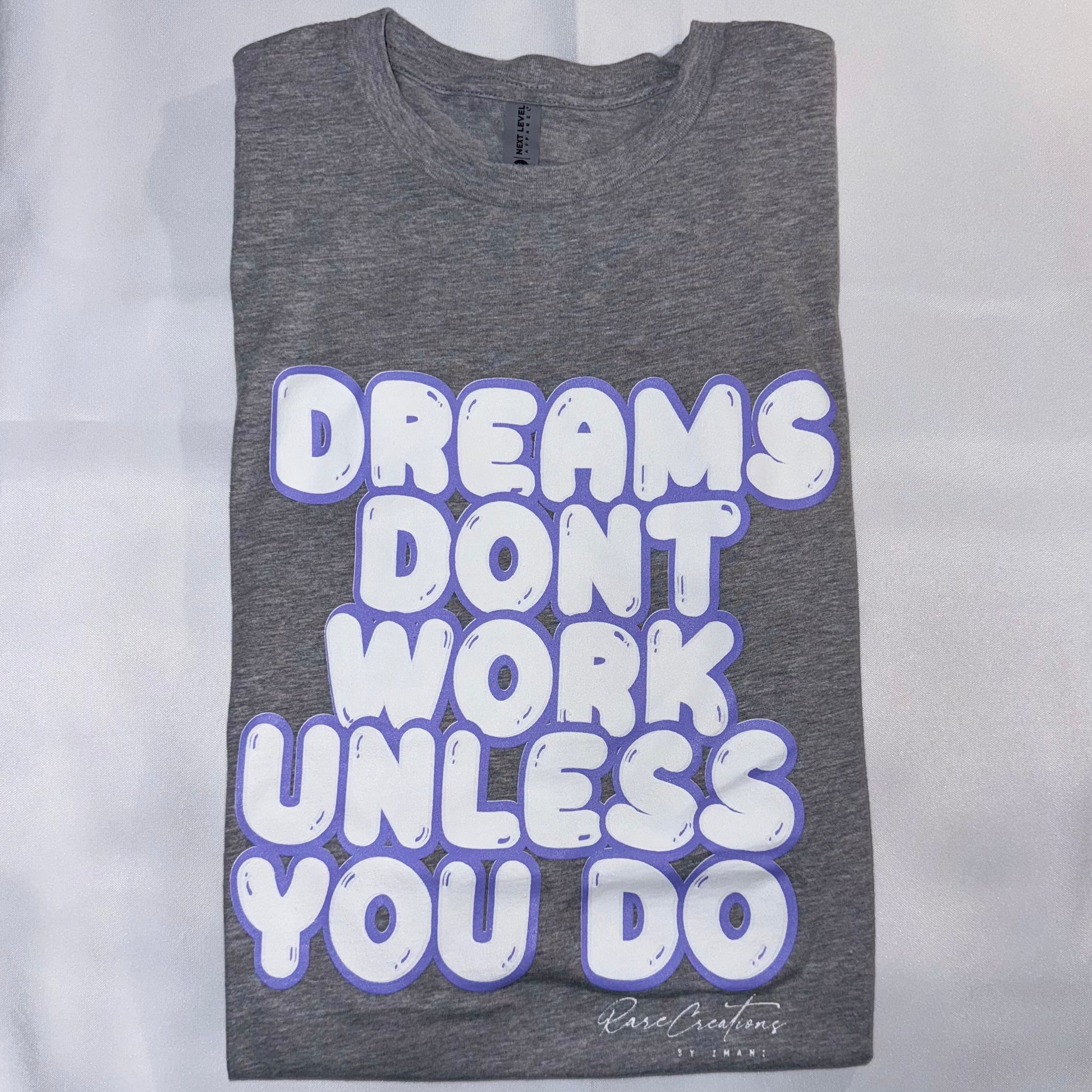 “DREAMS DON’T WORK UNLESS YOU DO” LIGHT GRAY/ LAVENDER